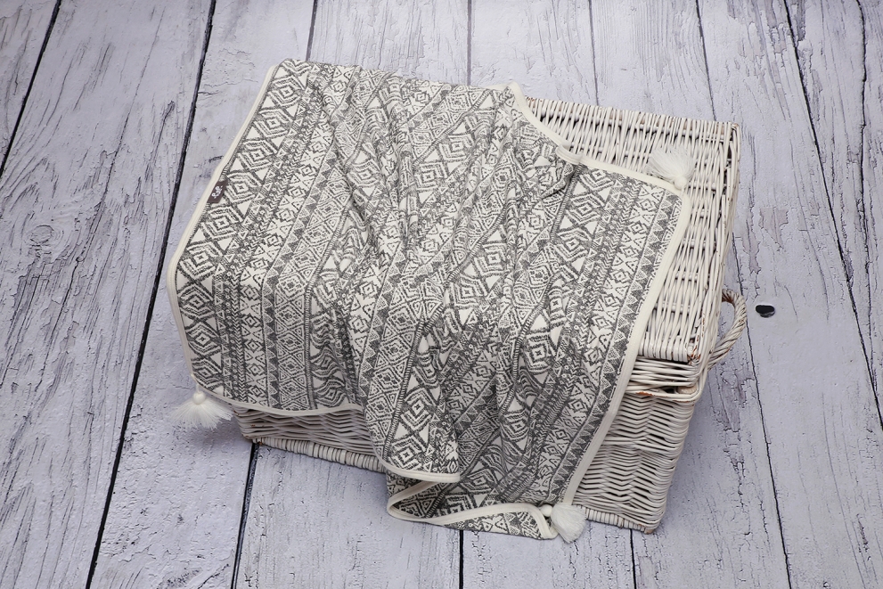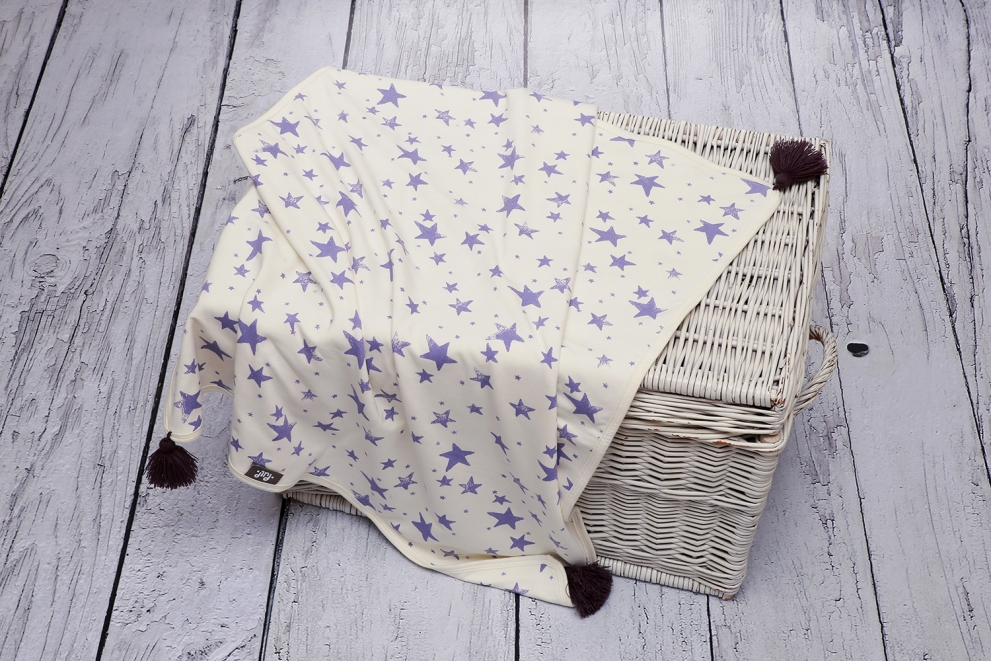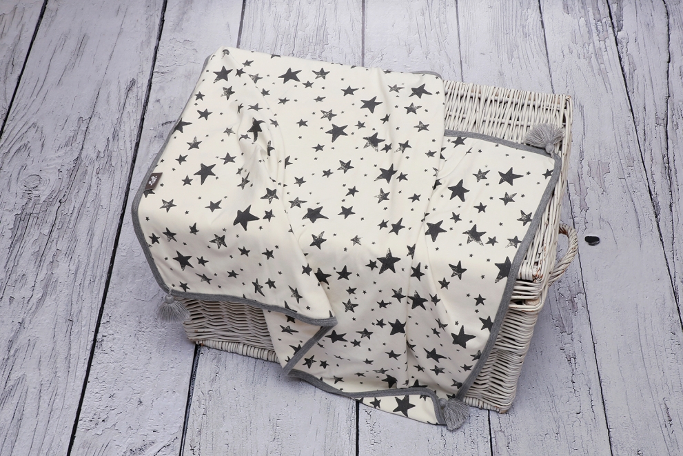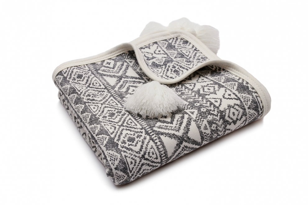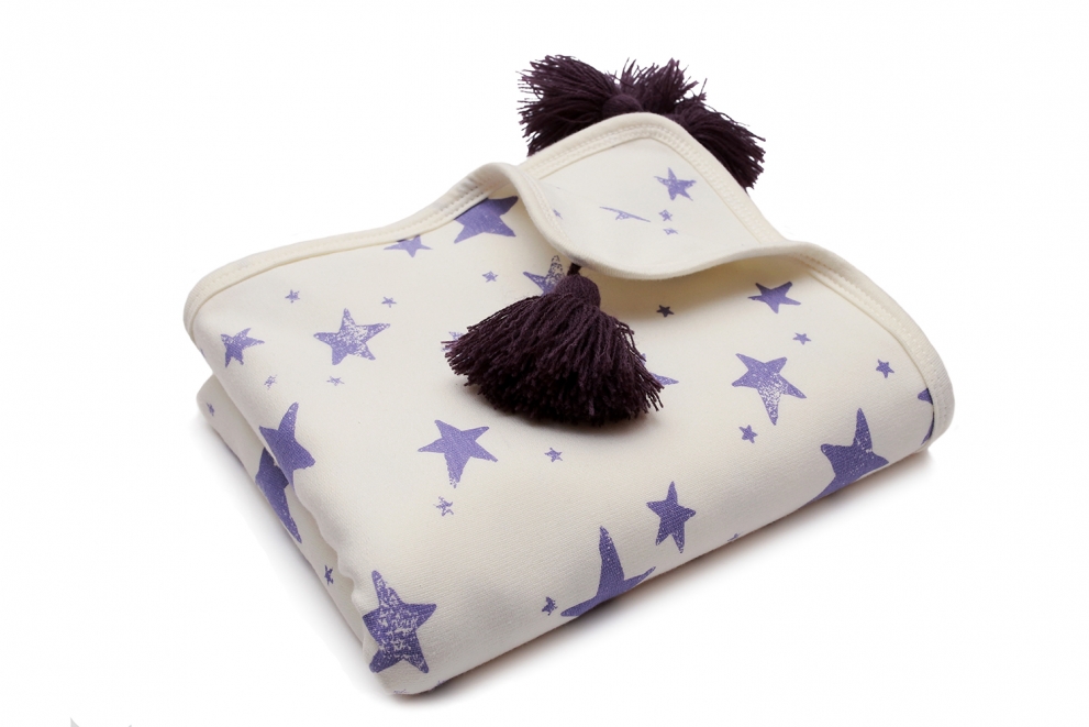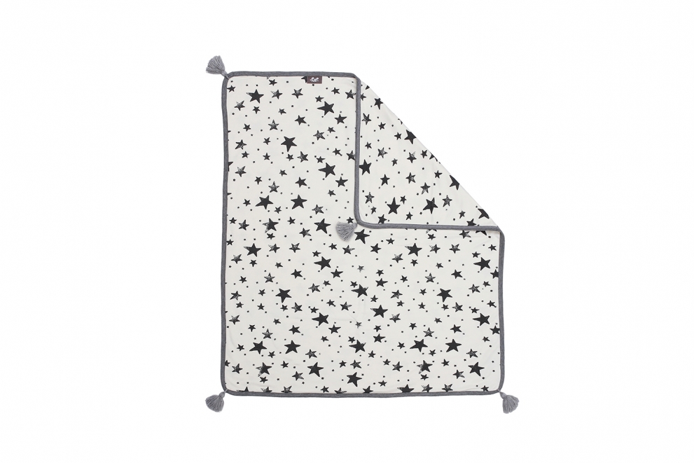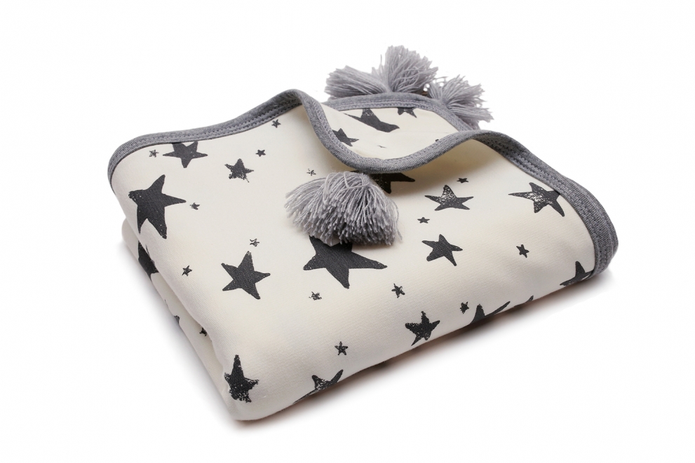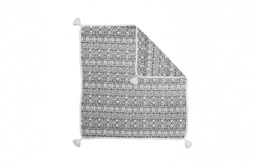 Ideálne pre detské postieľky a kočíky. Má štyri bavlnené brmbolce v každom rohu.