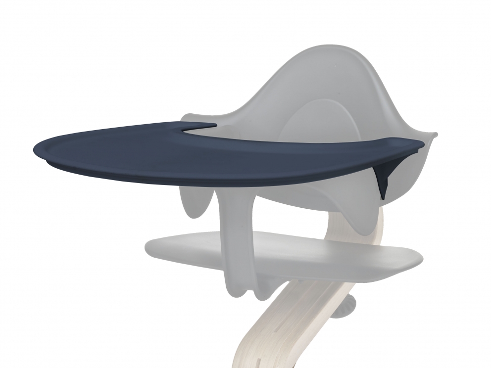 Pultík Tray sa ľahko namontuje na stoličku Nomi nasunutím na zábranu Mini. Max. zaťaženie na pultíku je 5 kg a môže sa umývať v umývačke riadu až do 40°