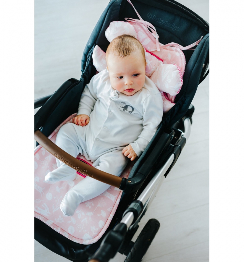 Univerzálne polstrovanie do kočíka PULP. Polstrovanie je obojstranné - z každej strany iný vzor. Vyšité otvory na rôzne výšky bezpečnostných pásov. Na kočík sa uchytáva pomocom bezpečnostných pásov kočíka, šnúrkami na vrchnom okraji polstrovania, alebo gumičkou na zadnej strane polstrovania. Vhodné pre väčšinu športových kočíkov. Na polstrovanie je možné uchytiť vankúšik proti otrasom (voliteľné príslušenstvo) pomocou odnímateľného pruhu na suchý zips.