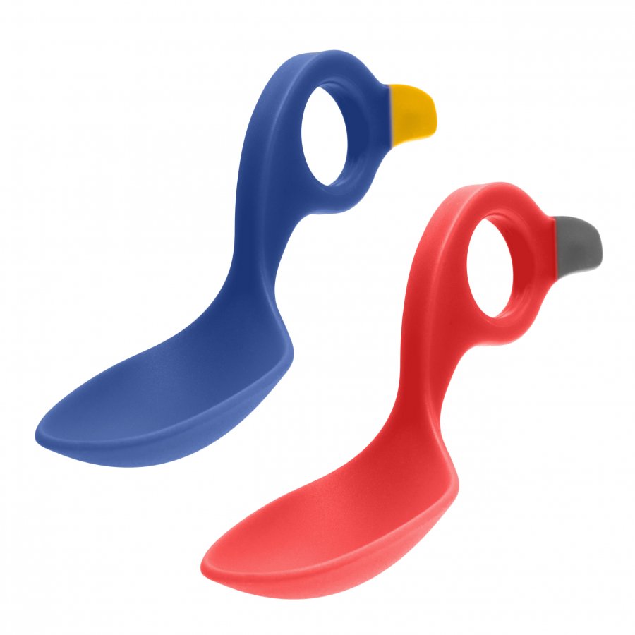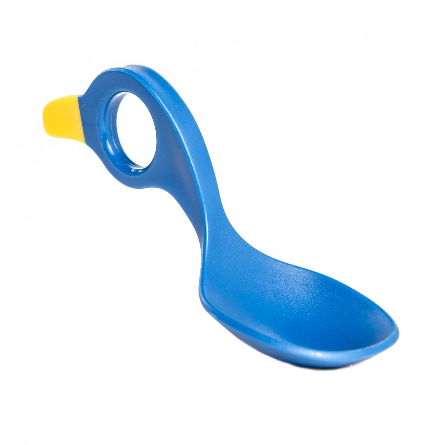 Otvor v lyžičke umožní kontakt medzi palcom a ukazovákom pre zvýšenie stability uchopenia a ak to dieťaťu bude viac vyhovovať, môže prevliecť palec alebo ukazovák cez otvor pre bezpečnejšie uchopenie.