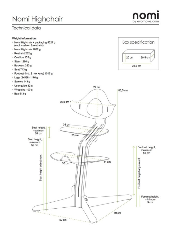 Rastúca stolička NOMI je jadrom konceptu Nomi. Je vhodná pre deti od cca 2 rokov až pre násťročných (a viac). Vašu rastúcu stoličku NOMI môžete kombinovať s voliteľným príslušenstvom, aby ste ju prispôsobili potrebám vášho rastúceho dieťaťa - priamo od prvého dňa vášho novorodenca.