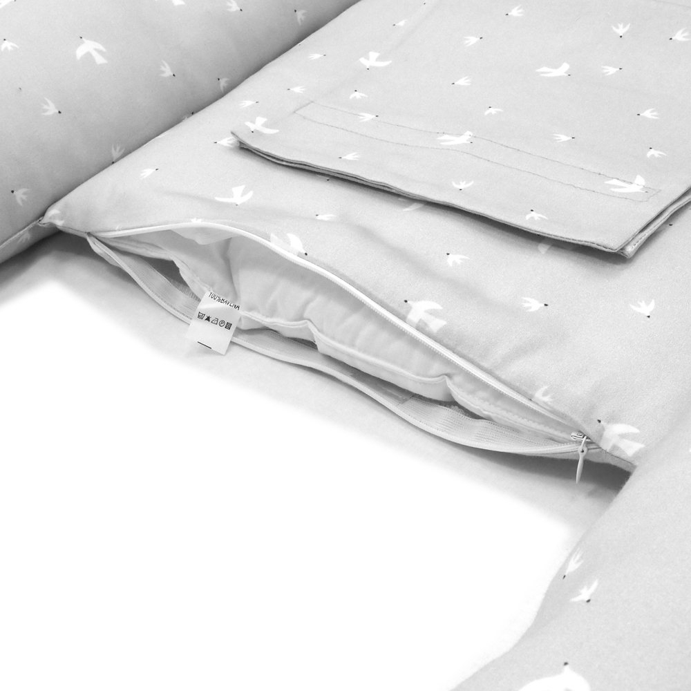 Hniezdo je možné používať obojstranne. Má praktickú šnúrku po obvode, ktorou je možné si jeho veľkosť upraviť podľa potreby. Aby sme docielili ešte väčšiu bezpečnosť, zaväzovanie je prekryté pásom na suchý zips, ktorý zároveň pomáha ešte lepšie držať tvar hniezda. Jeho ložná plocha je odzipsovateľnávnútorná výplň je vyberateľná, čo je z praktického hľadiska veľká výhoda. Umožňuje tým totiž oveľa ľahšiu manipuláciu pri jeho údržbe. Obvodový pás je vyplnený certifikovaným guľôčkovým dutým vláknom a vyberateľná výplň ložnej plochy je vyrobená zo 100% bavlny a dutého vlákna hrúbky 2cm.