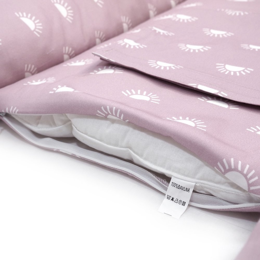 Hniezdo je možné používať obojstranne. Má praktickú šnúrku po obvode, ktorou je možné si jeho veľkosť upraviť podľa potreby. Aby sme docielili ešte väčšiu bezpečnosť, zaväzovanie je prekryté pásom na suchý zips, ktorý zároveň pomáha ešte lepšie držať tvar hniezda. Jeho ložná plocha je odzipsovateľnávnútorná výplň je vyberateľná, čo je z praktického hľadiska veľká výhoda. Umožňuje tým totiž oveľa ľahšiu manipuláciu pri jeho údržbe. Obvodový pás je vyplnený certifikovaným guľôčkovým dutým vláknom a vyberateľná výplň ložnej plochy je vyrobená zo 100% bavlny a dutého vlákna hrúbky 2cm.