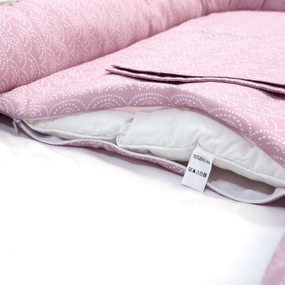 Hniezdo je možné používať obojstranne. Má praktickú šnúrku po obvode, ktorou je možné si jeho veľkosť upraviť podľa potreby. Aby sme docielili ešte väčšiu bezpečnosť, zaväzovanie je prekryté pásom na suchý zips, ktorý zároveň pomáha ešte lepšie držať tvar hniezda. Jeho ložná plocha je odzipsovateľnávnútorná výplň je vyberateľná, čo je z praktického hľadiska veľká výhoda. Umožňuje tým totiž oveľa ľahšiu manipuláciu pri jeho údržbe. Obvodový pás je vyplnený certifikovaným guľôčkovým dutým vláknom a vyberateľná výplň ložnej plochy je vyrobená zo 100% bavlny a dutého vlákna hrúbky 2cm.