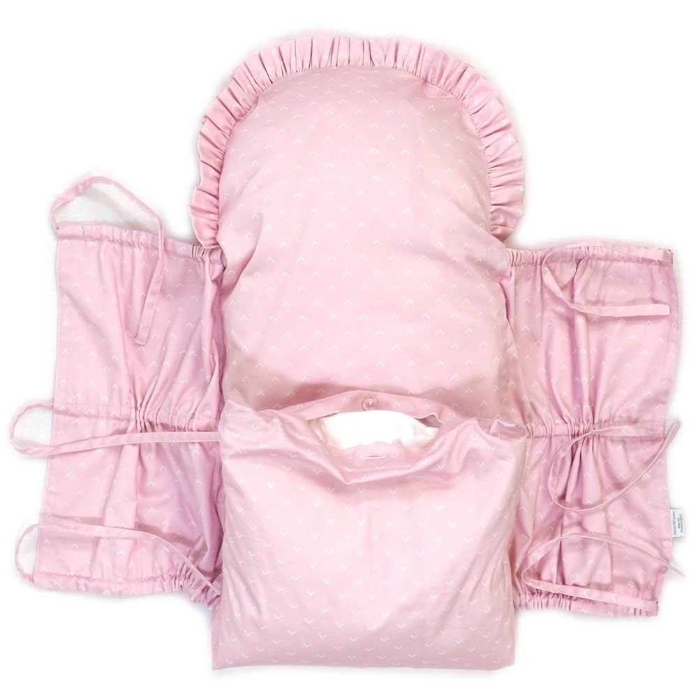 Perinka SOFTELLO je vyrobená z kvalitného bavlneného saténu s našim vlastným originálnym dizajnom. Tento materiál je na dotyk v porovnaní s klasickou bavlnou oveľa príjemnejší a hebkejší, a preto zaručí vášmu bábätku príjemné teplo. Má tvar obdĺžnika, a zaoblenú stranu zdobí malý volánik. Zaväzuje sa tromi šnúrkami, pevne všitými v bočných dieloch, takže nemusíte mať obavu, že by sa vám šnúrka mohla vyvliecť. Vnútornú výplň je možné vybrať, čím značne zjednodušuje jej údržbu a predlžuje jej životnosť.