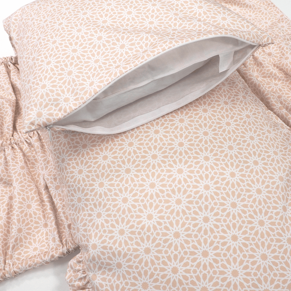 Perinka SOFTELLO je vyrobená z kvalitného bavlneného saténu s našim vlastným originálnym dizajnom. Tento materiál je na dotyk v porovnaní s klasickou bavlnou oveľa príjemnejší a hebkejší, a preto zaručí vášmu bábätku príjemné teplo. Má tvar obdĺžnika, a zaoblenú stranu zdobí malý volánik. Zaväzuje sa tromi šnúrkami, pevne všitými v bočných dieloch, takže nemusíte mať obavu, že by sa vám šnúrka mohla vyvliecť. Vnútornú výplň je možné vybrať, čím značne zjednodušuje jej údržbu a predlžuje jej životnosť.