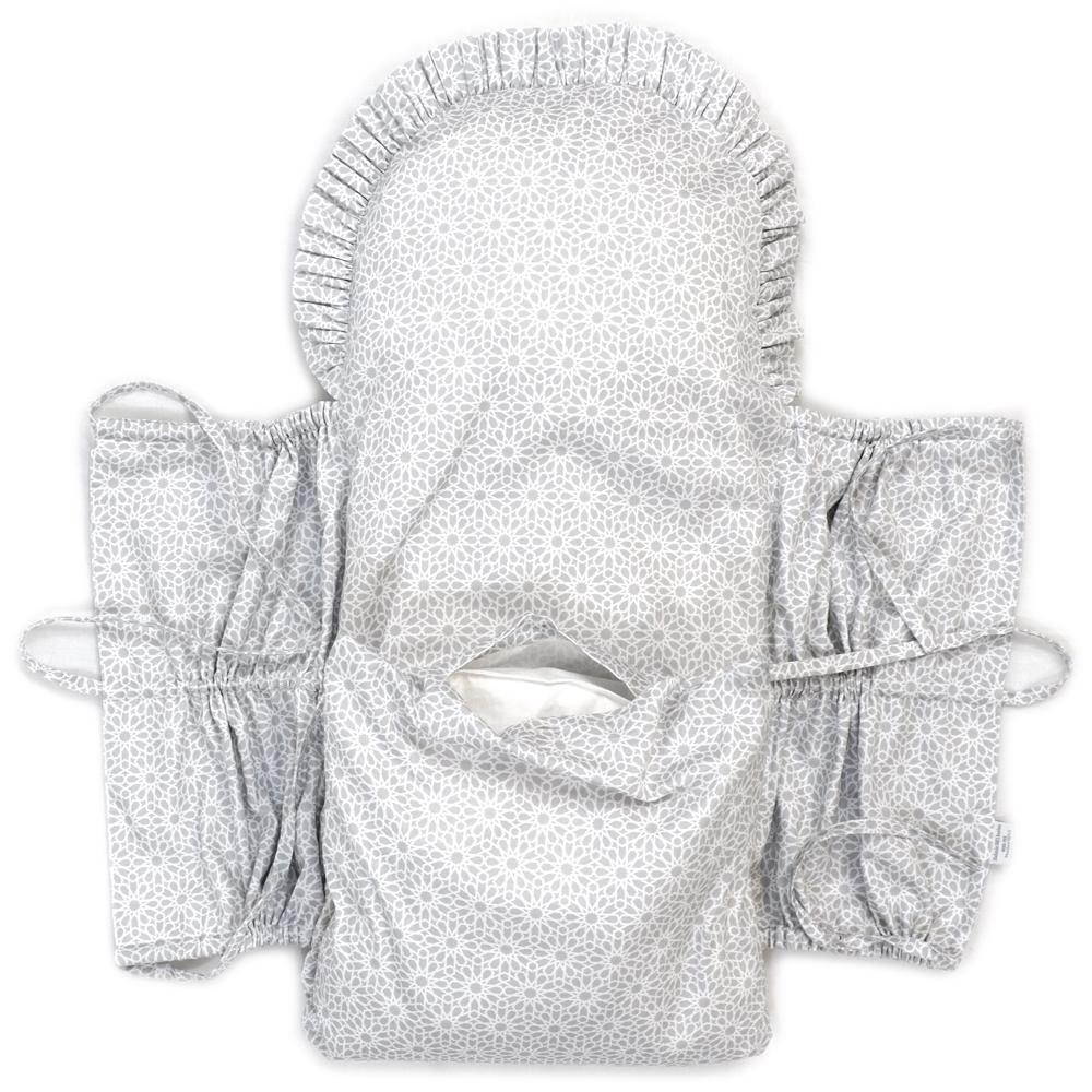 Perinka SOFTELLO je vyrobená z kvalitného bavlneného saténu s našim vlastným originálnym dizajnom. Tento materiál je na dotyk v porovnaní s klasickou bavlnou oveľa príjemnejší a hebkejší, a preto zaručí vášmu bábätku príjemné teplo. Má tvar obdĺžnika, a zaoblenú stranu zdobí malý volánik. Zaväzuje sa tromi šnúrkami, pevne všitými v bočných dieloch, takže nemusíte mať obavu, že by sa vám šnúrka mohla vyvliecť. Vnútornú výplň je možné vybrať, čím značne zjednodušuje jej údržbu a predlžuje jej životnosť.