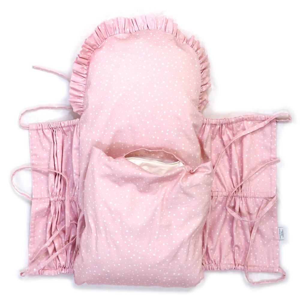 Perinka SOFTELLO je vyrobená z kvalitného bavlneného saténu s našim vlastným originálnym dizajnom. Tento materiál je na dotyk v porovnaní s klasickou bavlnou oveľa príjemnejší a hebkejší, a preto zaručí vášmu bábätku príjemné teplo. Má tvar obdĺžnika, a zaoblenú stranu zdobí malý volánik. Zaväzuje sa tromi šnúrkami, pevne všitými v bočných dieloch, takže nemusíte mať obavu, že by sa vám šnúrka mohla vyvliecť. Vnútornú výplň je možné vybrať, čím značne zjednodušuje jej údržbu a predlžuje jej životnosť.