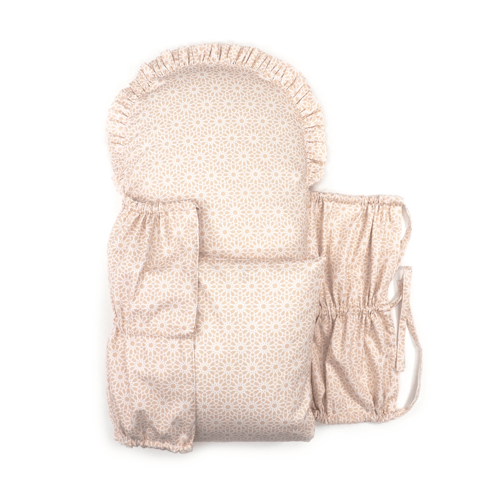 Perinka SOFTELLO je vyrobená z kvalitného bavlneného saténu s našim vlastným originálnym dizajnom. Tento materiál je na dotyk v porovnaní s klasickou bavlnou oveľa príjemnejší a hebkejší, a preto zaručí vášmu bábätku príjemné teplo. Má tvar obdĺžnika, a zaoblenú stranu zdobí malý volánik. Zaväzuje sa tromi šnúrkami, pevne všitými v bočných dieloch, takže nemusíte mať obavu, že by sa vám šnúrka mohla vyvliecť. Vnútornú výplň je možné vybrať, čím značne zjednodušuje jej údržbu a predlžuje jej životnosť.