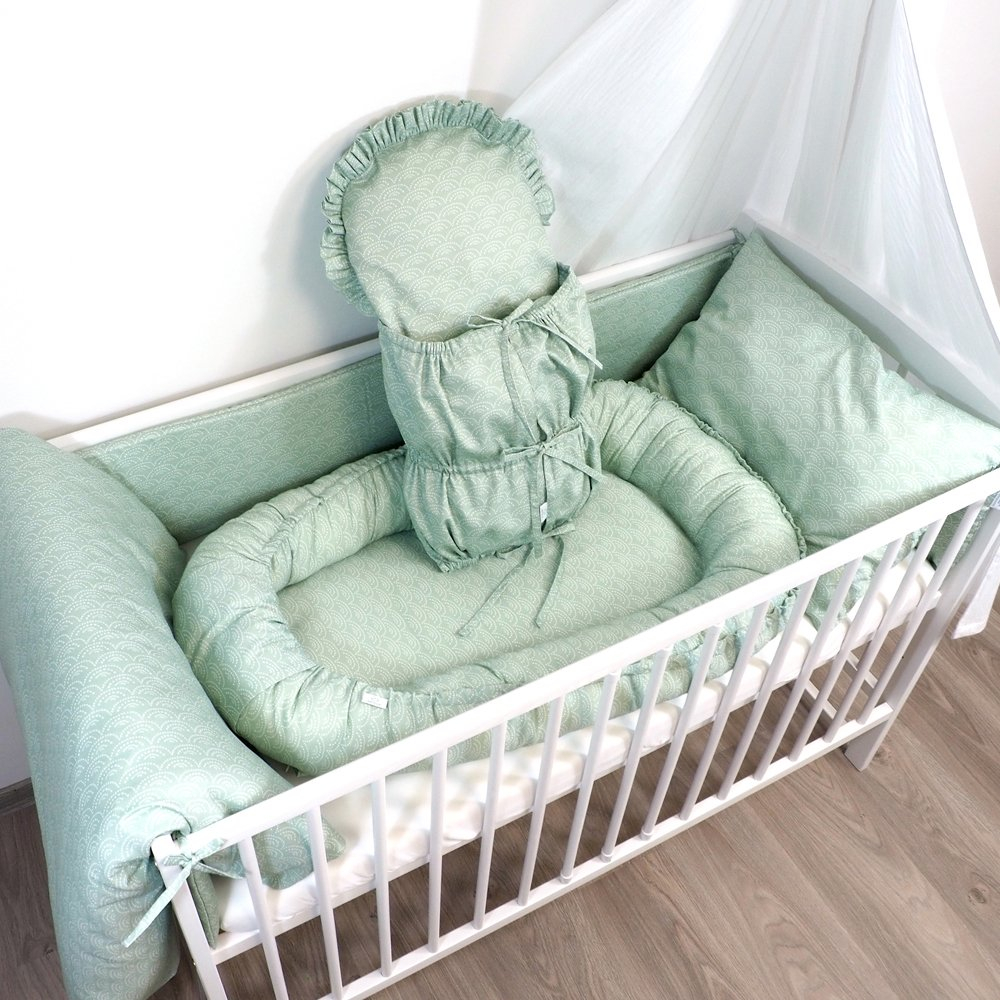 Perinka SOFTELLO je vyrobená z kvalitného bavlneného saténu s našim vlastným originálnym dizajnom. Tento materiál je na dotyk v porovnaní s klasickou bavlnou oveľa príjemnejší a hebkejší, a preto zaručí vášmu bábätku príjemné teplo. Má tvar obdĺžnika, a zaoblenú stranu zdobí malý volánik. Zaväzuje sa tromi šnúrkami, pevne všitými v bočných dieloch, takže nemusíte mať obavu, že by sa vám šnúrka mohla vyvliecť. Vnútornú výplň je možné vybrať, čím značne zjednodušuje jej údržbu a predlžuje jej životnosť.