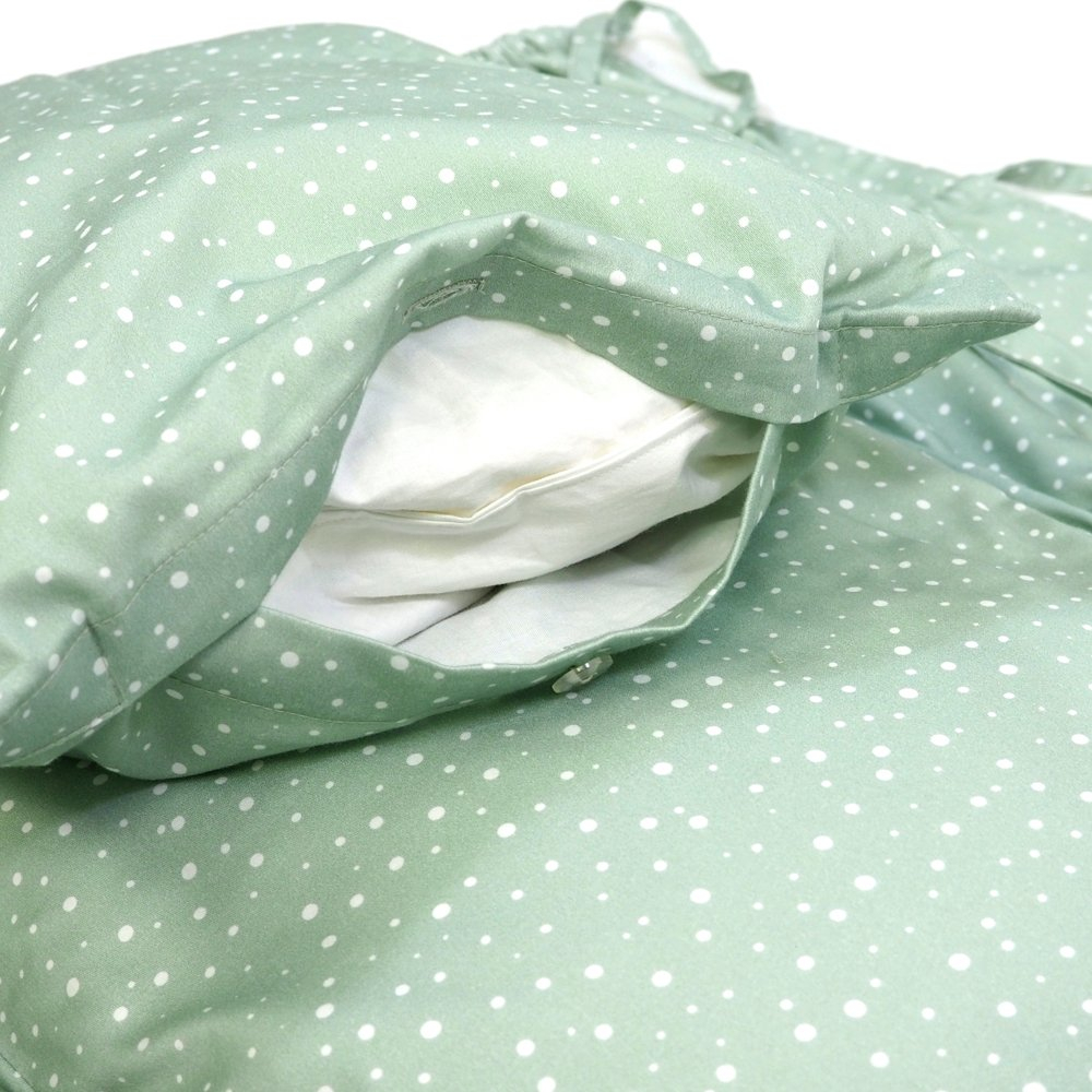 Perinka SOFTELLO je vyrobená z kvalitného bavlneného saténu s našim vlastným originálnym dizajnom. Tento materiál je na dotyk v porovnaní s klasickou bavlnou oveľa príjemnejší a hebkejší, a preto zaručí vášmu bábätku príjemné teplo. Má tvar obdĺžnika, a zaoblenú stranu zdobí malý volánik. Zaväzuje sa tromi šnúrkami, pevne všitými v bočných dieloch, takže nemusíte mať obavu, že by sa vám šnúrka mohla vyvliecť. Vnútornú výplň je možné vybrať, čím značne zjednodušuje jej údržbu a predlžuje jej životnosť.