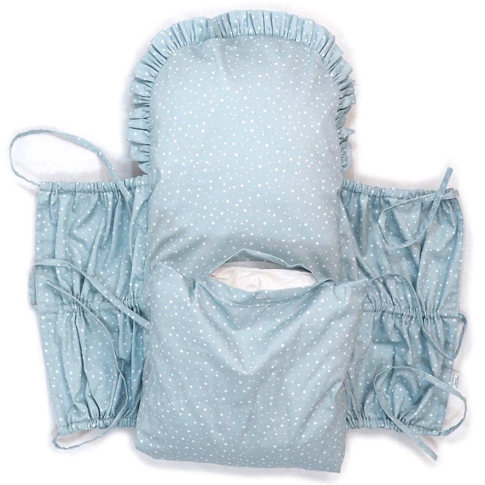 Perinka SOFTELLO je vyrobená z kvalitného bavlneného saténu s našim vlastným originálnym dizajnom. Tento materiál je na dotyk v porovnaní s klasickou bavlnou oveľa príjemnejší a hebkejší, a preto zaručí vášmu bábätku príjemné teplo. Má tvar obdĺžnika, a zaoblenú stranu zdobí malý volánik. Zaväzuje sa tromi šnúrkami, pevne všitými v bočných dieloch, takže nemusíte mať obavu, že by sa vám šnúrka mohla vyvliecť. Vnútornú výplň je možné vybrať, čím značne zjednodušuje jej údržbu a predlžuje jej životnosť.