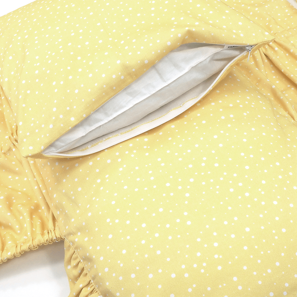 Perinka SOFTELLO je vyrobená z kvalitného bavlneného saténu s našim vlastným originálnym dizajnom. Tento materiál je na dotyk v porovnaní s klasickou bavlnou oveľa príjemnejší a hebkejší, a preto zaručí vášmu bábätku príjemné teplo. Má tvar obdĺžnika, a zaoblenú stranu zdobí malý volánik. Zaväzuje sa tromi šnúrkami, pevne všitými v bočných dieloch, takže nemusíte mať obavu, že by sa vám šnúrka mohla vyvliecť. Vnútornú výplň je možné vybrať, čím značne zjednodušuje jej údržbu a predlžuje jej životnosť.
