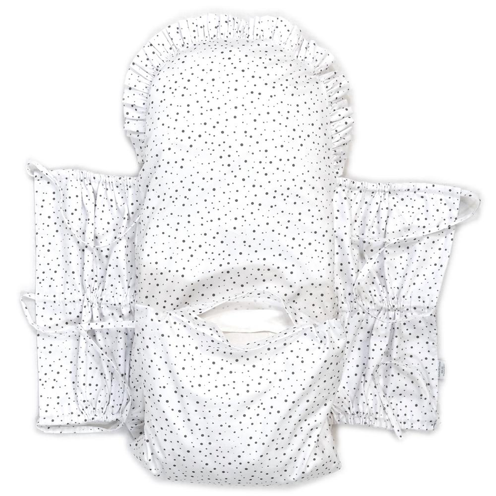Perinka SOFTELLO je vyrobená z kvalitného bavlneného saténu s našim vlastným originálnym dizajnom. Tento materiál je na dotyk v porovnaní s klasickou bavlnou oveľa príjemnejší a hebkejší, a preto zaručí vášmu bábätku príjemné teplo. Má tvar obdĺžnika, a zaoblenú stranu zdobí malý volánik. Zaväzuje sa tromi šnúrkami, pevne všitými v bočných dieloch, takže nemusíte mať obavu, že by sa vám šnúrka mohla vyvliecť. Vnútornú výplň je možné vybrať, čím značne zjednodušuje jej údržbu a predlžuje jej životnosť.