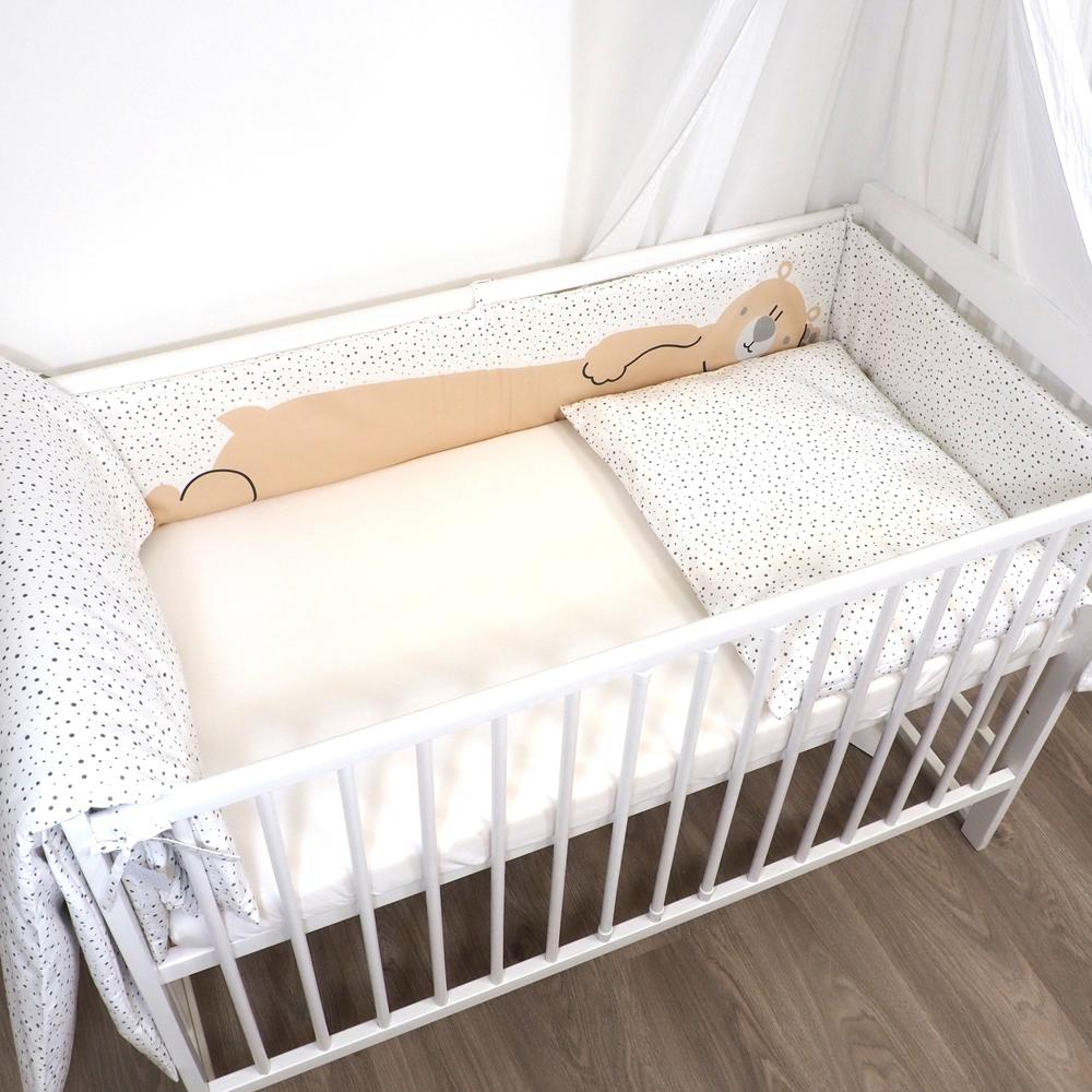 K veľkému mantinelu si môžete v rovnakom dizajne dokúpiť aj malý mantinel v rozmere 15 x 120 cm, ktorý je určený na čiastočné prekrytie zvyšnej štvrtej strany vašej postieľky.