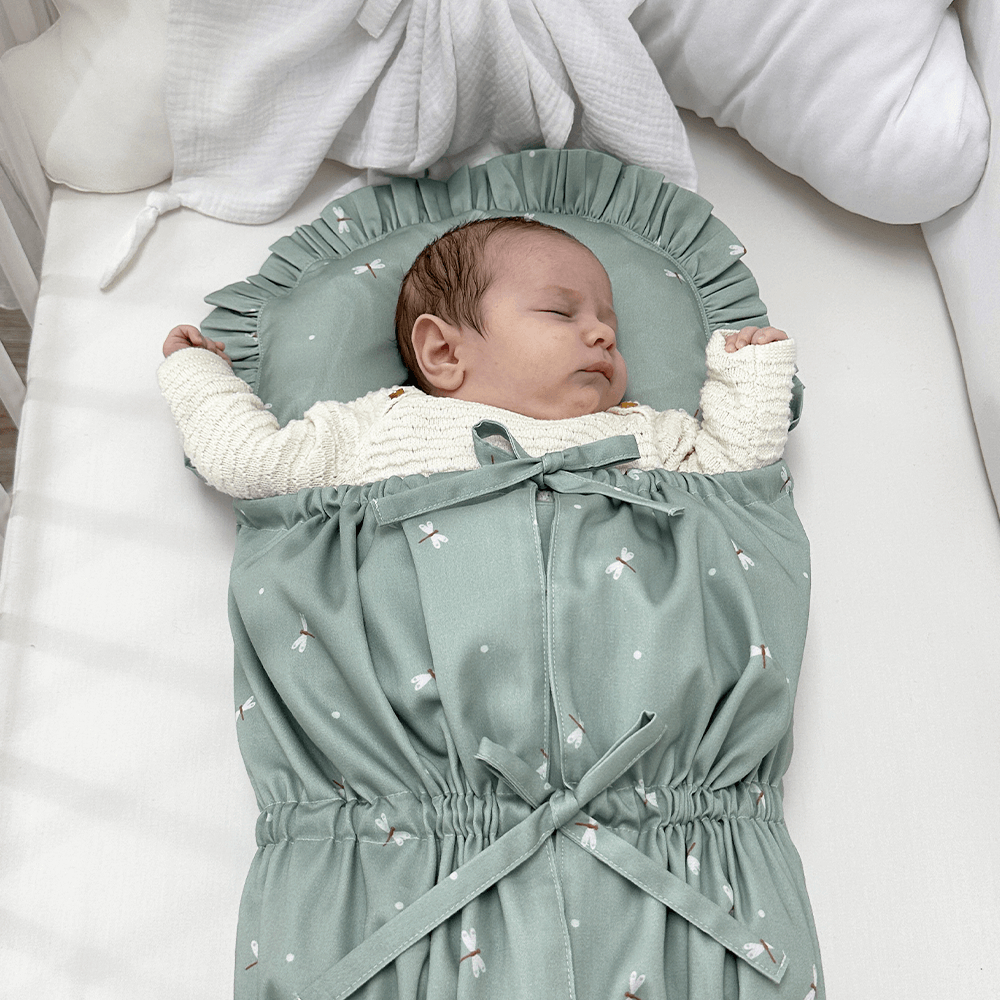 Perinka SOFTELLO je vyrobená z kvalitného bavlneného saténu s našim vlastným originálnym dizajnom. Tento materiál je na dotyk v porovnaní s klasickou bavlnou oveľa príjemnejší a hebkejší, a preto zaručí vášmu bábätku príjemné teplo. Má tvar obdĺžnika, a zaoblenú stranu zdobí malý volánik. Zaväzuje sa tromi šnúrkami, pevne všitými v bočných dieloch, takže nemusíte mať obavu, že by sa vám šnúrka mohla vyvliecť. Vnútornú výplň je možné vybrať, čím značne zjednodušuje jej údržbu a predlžuje jej životnosť.