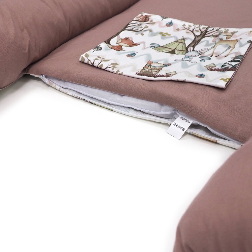 Hniezdo je možné používať obojstranne a je rastúce. Má praktickú šnúrku po obvode, ktorou je možné si jeho veľkosť upraviť podľa potreby. Aby sme docielili ešte väčšiu bezpečnosť, zaväzovanie je prekryté pásom na suchý zips, ktorý zároveň pomáha ešte lepšie držať tvar hniezda. Jeho ložná plocha je odzipsovateľná a vnútorná výplň je vyberateľná, čo je z praktického hľadiska veľká výhoda. Umožňuje tým totiž oveľa ľahšiu manipuláciu pri jeho údržbe. Obvodový pás je vyplnený certifikovaným guľôčkovým dutým vláknom a vyberateľná výplň ložnej plochy je vyrobená zo 100% bavlny a dutého vlákna hrúbky 2cm.