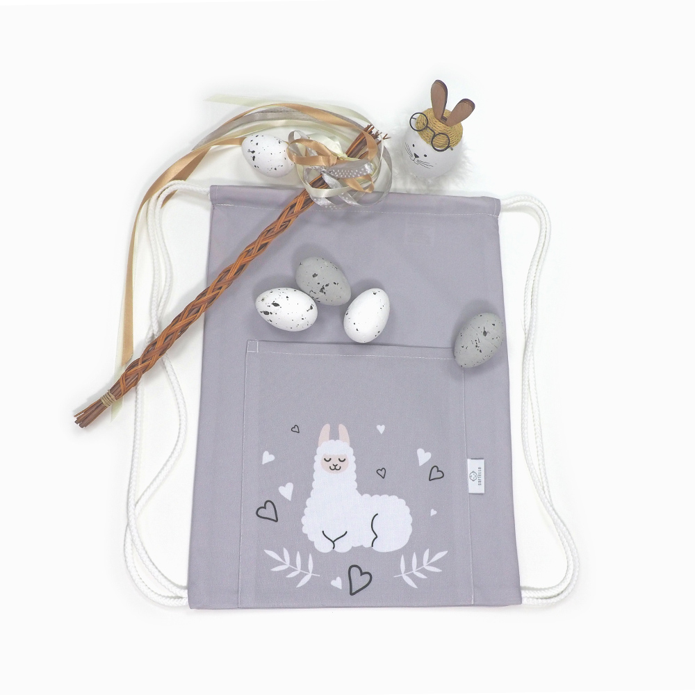Detský vak na chrbát - lama sivá