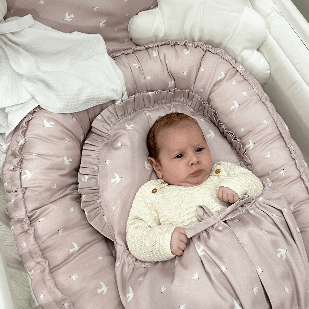 Perinka SOFTELLO je vyrobená z kvalitného bavlneného saténu s našim vlastným originálnym dizajnom. Tento materiál je na dotyk v porovnaní s klasickou bavlnou oveľa príjemnejší a hebkejší, a preto zaručí vášmu bábätku príjemné teplo. Má tvar obdĺžnika, a zaoblenú stranu zdobí malý volánik. Zaväzuje sa tromi šnúrkami, pevne všitými v bočných dieloch, takže nemusíte mať obavu, že by sa vám šnúrka mohla vyvliecť. Vnútornú výplň je možné vybrať, čím značne zjednodušuje jej údržbu a predlžuje jej životnosť.