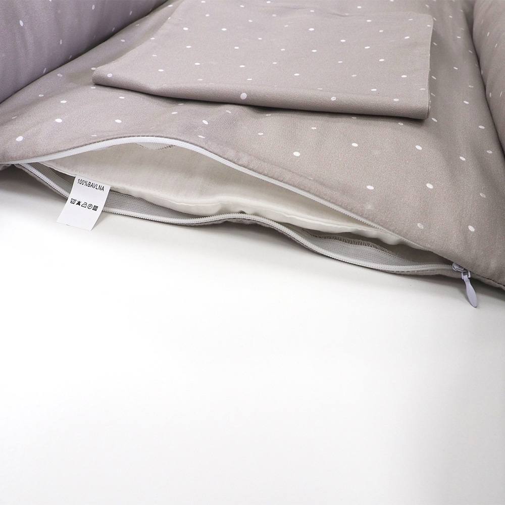 Hniezdo je možné používať obojstranne a je rastúce. Má praktickú šnúrku po obvode, ktorou je možné si jeho veľkosť upraviť podľa potreby. Aby sme docielili ešte väčšiu bezpečnosť, zaväzovanie je prekryté pásom na suchý zips, ktorý zároveň pomáha ešte lepšie držať tvar hniezda. Jeho ložná plocha je odzipsovateľnávnútorná výplň je vyberateľná, čo je z praktického hľadiska veľká výhoda. Umožňuje tým totiž oveľa ľahšiu manipuláciu pri jeho údržbe. Obvodový pás je vyplnený certifikovaným guľôčkovým dutým vláknom a vyberateľná výplň ložnej plochy je vyrobená zo 100% bavlny a dutého vlákna hrúbky 2cm.