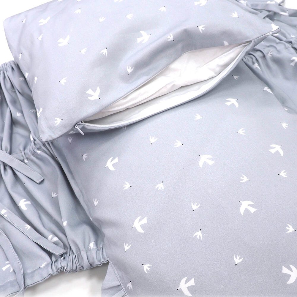 Náhradný doplnkový návlek na perinku SOFTELLO v dizajne sivomodré vtáčiky. V našej ponuke nájdete perinky v letnej, zimnej a páperovej verzii. Návlek na perinku je navrhnutý tak, aby rozmermi sedel na každú verziu perinky SOFTELLO, či už na letnú, zimnú, alebo páperovú. V spodnej časti návleku sa nachádza skrytý zips, cez ktorý jednoducho vložíte vnútornú výplň z vašej perinky. Všetky návleky sú vyrobené z jemnučkého bavlneného saténu.
